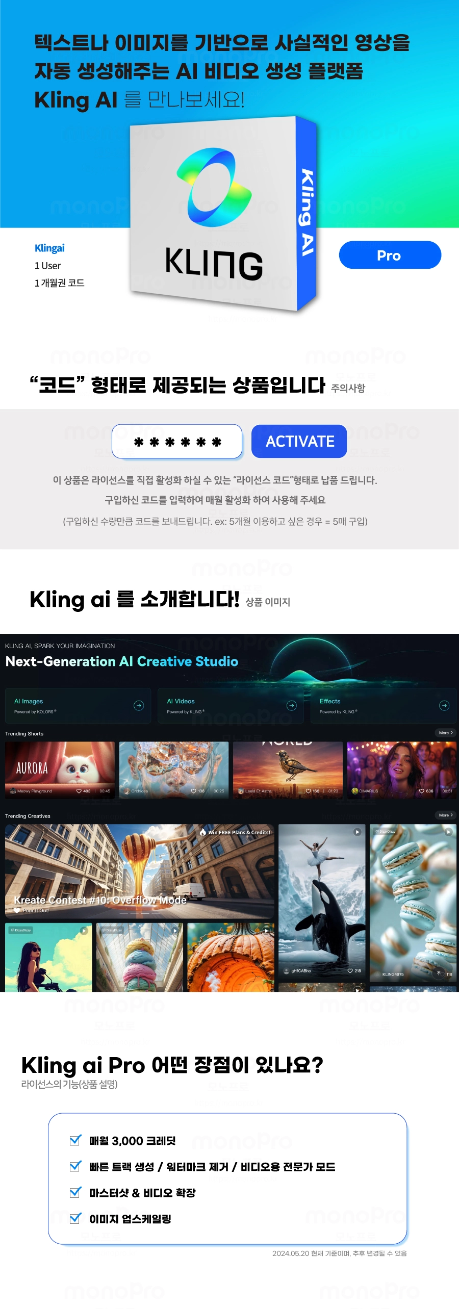 클링 AI 프로 : 1개월 1유저 활성화코드 Kling AI Pro