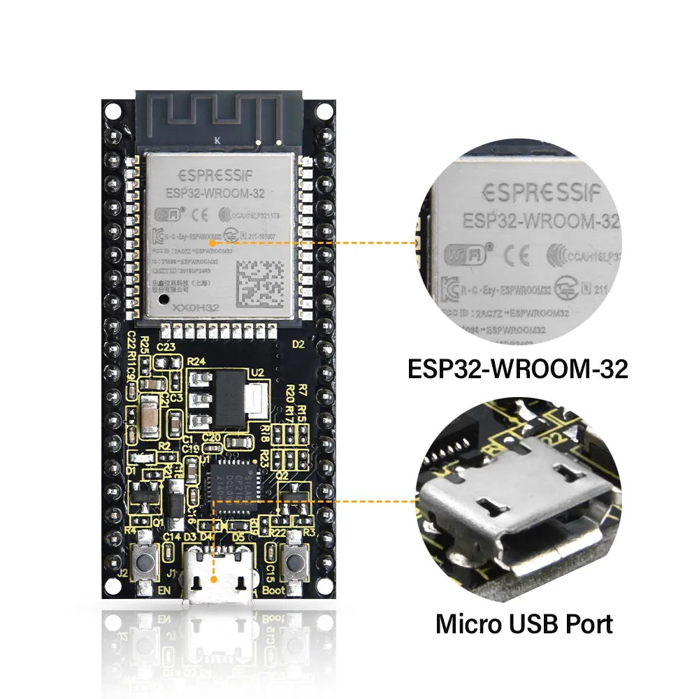 - Microcontroller: ESP-WROOM-32 module