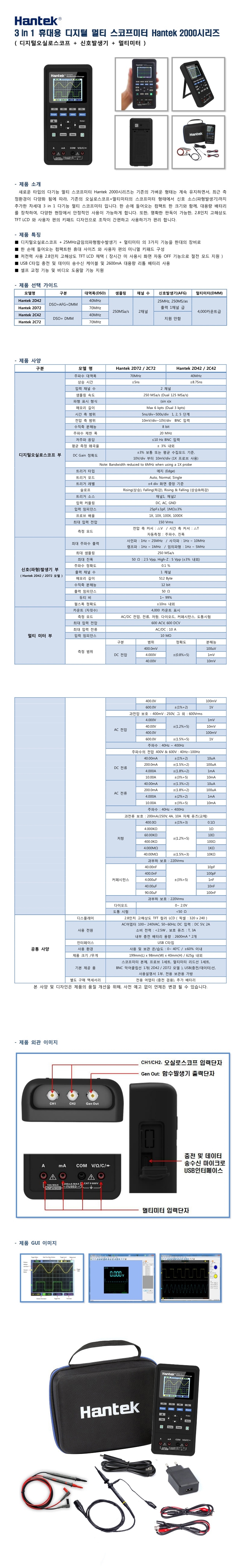 휴대용 오실로스코프 40MHz/2채널 한텍 HANTEK 2D42