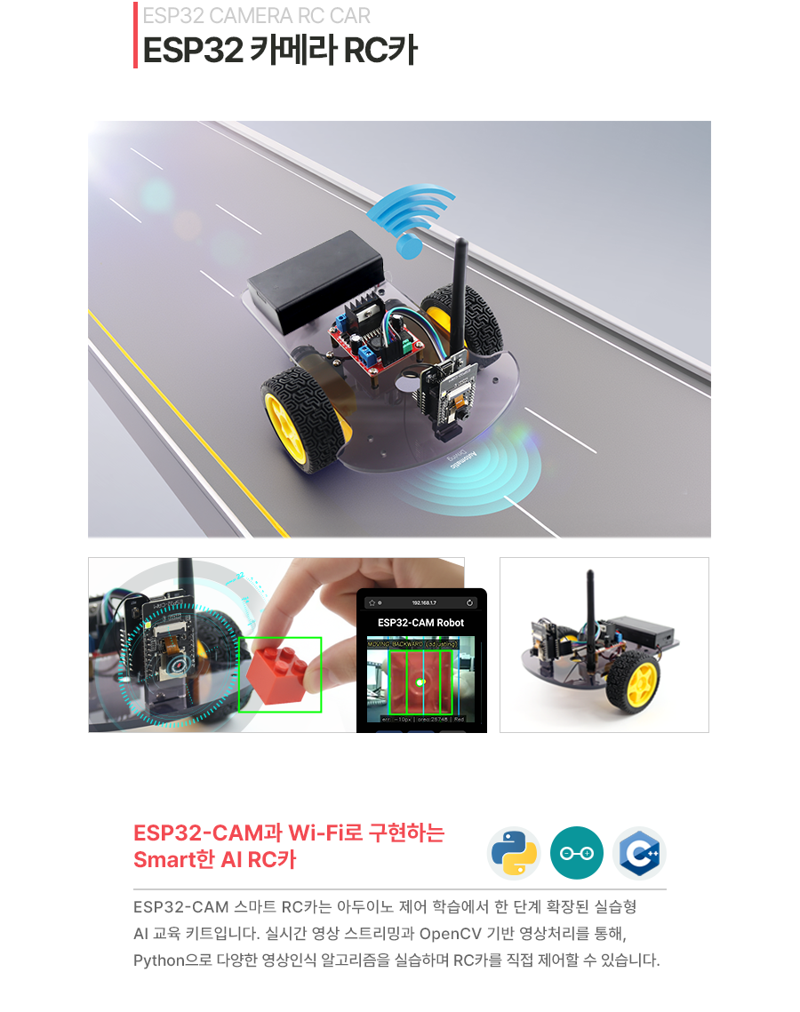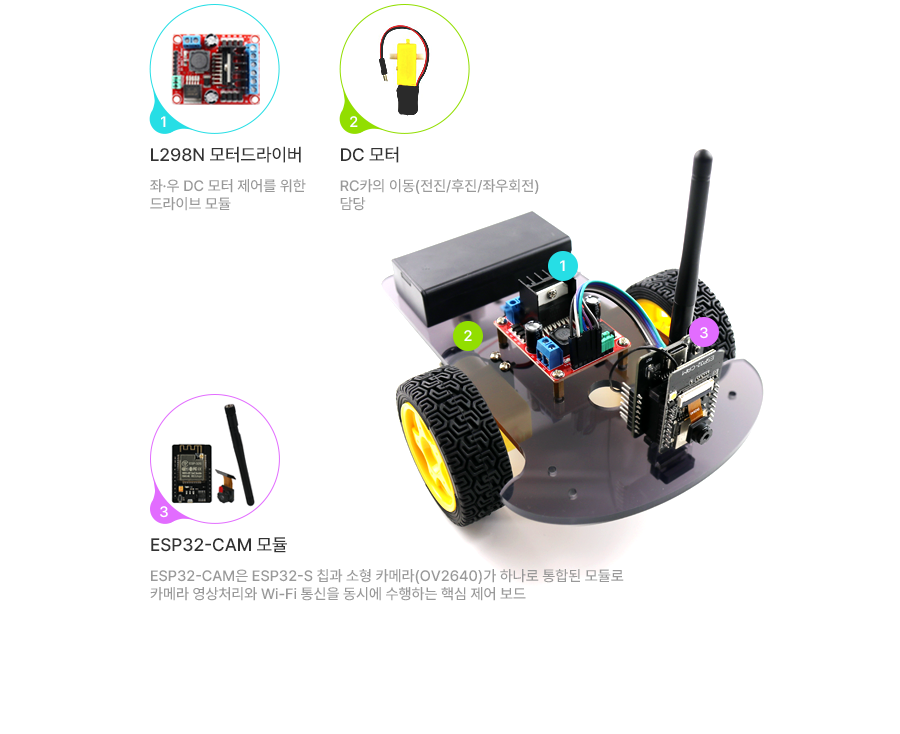 ESP32 카메라 RC카는 WiFi 통신으로 연결하여 비디오 스트리밍을 보면서 제어할 수 있는 원격 RC카 입니다.