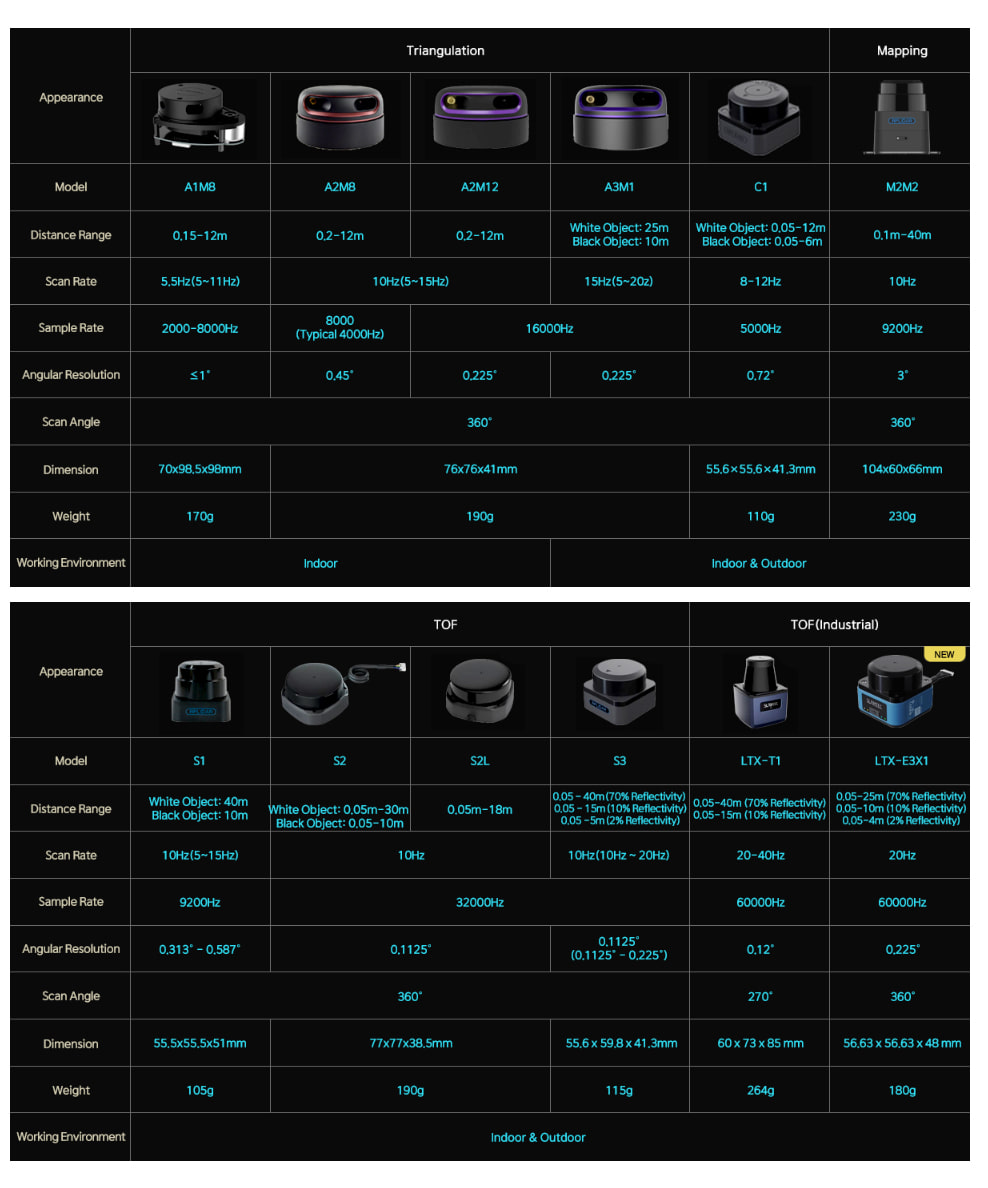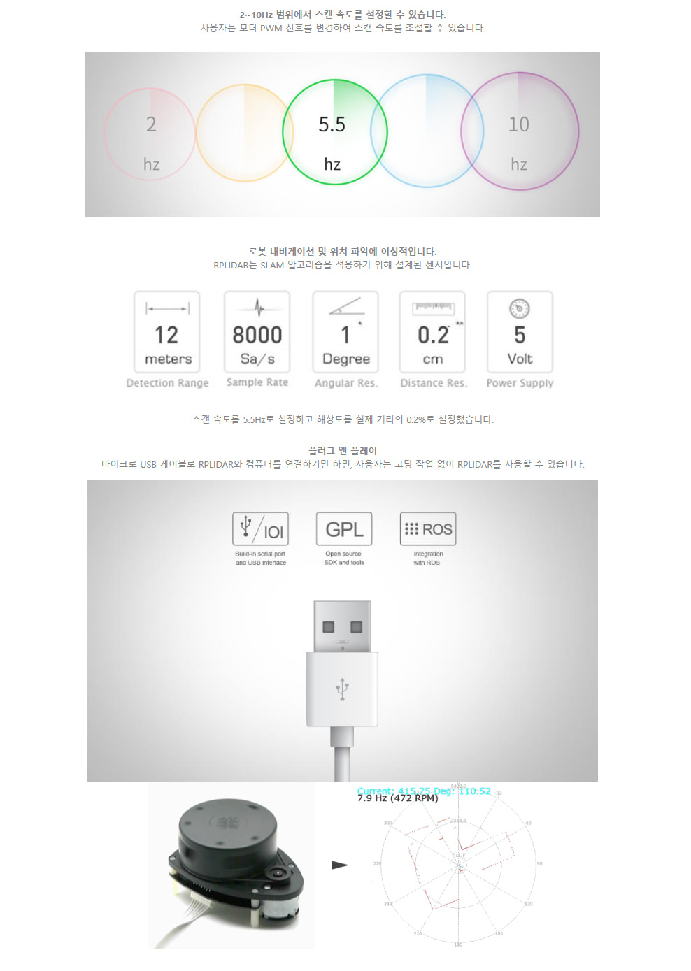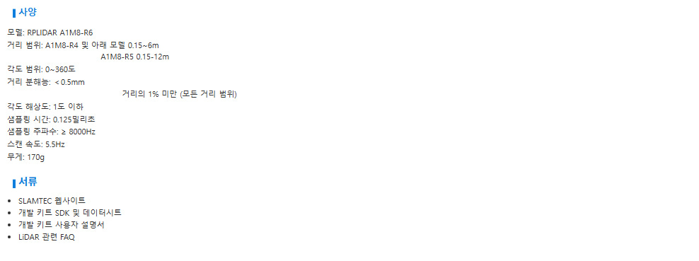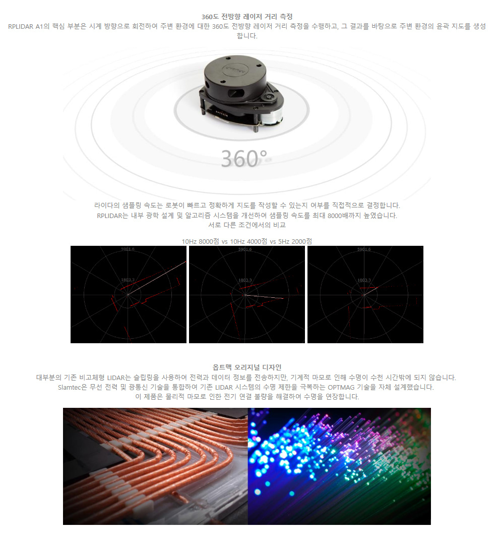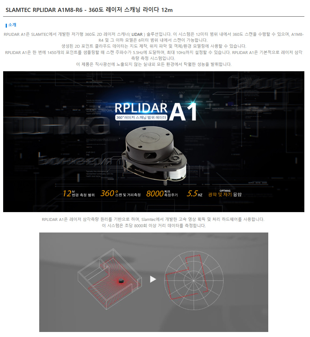 SLAMTEC RPLIDAR : A1M8-R6 360도 12m 거리측정 2D LiDAR 센서